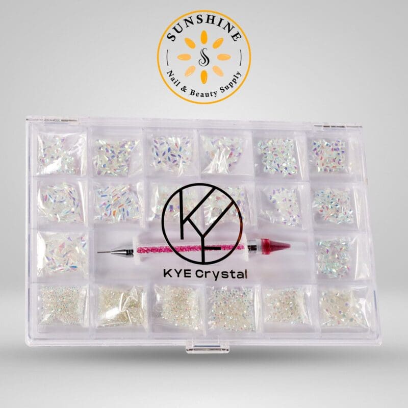 Enhance your nail art creations with the KYE Crystal Rhinestone Box, featuring 1,000 exquisite Crystal AB flat back rhinestones. These dazzling glass diamond rhinestones are perfect for adding a touch of elegance to your nails. The non-hotfix design allows for easy application, making it ideal for both professionals and DIY enthusiasts. The set includes a variety of hot-selling shapes carefully selected for their popularity and versatility. With 50 pieces in each grid and a total of 20 styles, you’ll have plenty of options to bring your nail art visions to life. Complete with a convenient picker tool, this KYE Crystal Rhinestone Box is a must-have for any nail art enthusiast.