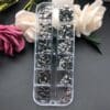The 12 grid Rhinestone box is meticulously designed to provide you with exceptional organization and convenience. Inside, you’ll find a dazzling collection of 6 different shapes, with 10 pieces of each shape, along with 6 sizes of round rhinestones ranging from SS4 to SS12. With a total of approximately 720 pieces, this pack ensures you have an abundant supply to bring your creative visions to life.