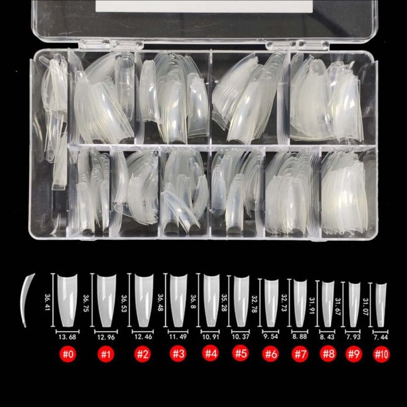 Elevate your nail game with KYE Long Coffin Tips #0-#10 (550pcs/Box). This versatile set includes 500 high-quality tips, neatly packaged in a bag or box. With 10 different sizes to choose from, achieving the perfect nail shape has never been easier.